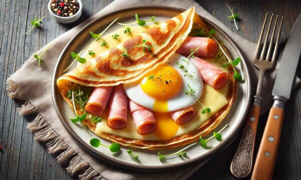 Crepe mặn (Crêpes salées): Làm từ bột kiều mạch, nhân có phô mai, trứng, thịt nguội, rau củ, và các loại sốt mặn. Crepe mặn thường được dùng như một món ăn chính.