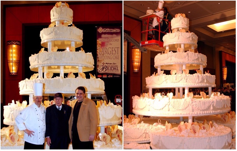 Theo Guinness World Records, chiếc bánh cưới cao nhất thế giới được làm tại một triển lãm cưới ở Uncasville, Connecticut, Hoa Kỳ vào năm 2004. Nó có chiều cao lên đến 5.2 mét (17 feet) và được tạo ra bởi một nhóm thợ làm bánh từ khách sạn Mohegan Sun.