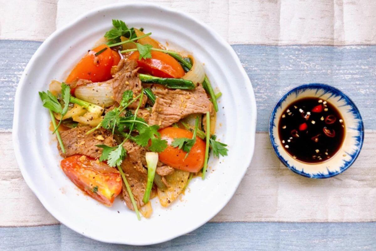 • Salad bò nướng: Thái lát mỏng, nướng áp chảo, trộn cùng rau xanh, sốt chua ngọt.