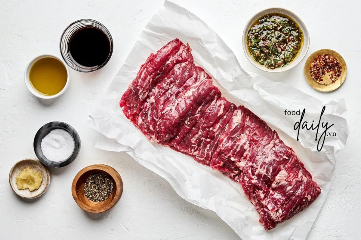 • Outside Skirt nướng sốt chimichurri: Ướp sốt chimichurri, nướng lửa lớn, cắt lát ăn kèm salad rau củ.