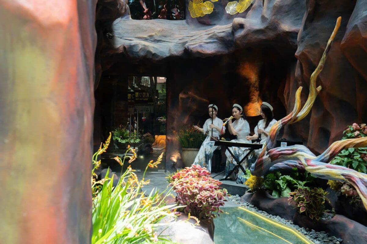 Tọa lạc tại số 177 Bùi Thị Xuân, quận Hai Bà Trưng, Vị Lai chay không chỉ là một nhà hàng mà còn là một không gian thiền tịnh, nơi thiên nhiên hòa quyện trong từng góc nhỏ. Kiến trúc lấy cảm hứng từ vẻ đẹp tự nhiên nguyên bản với đá, nước và cây xanh điểm xuyết, tạo nên bức tranh bình yên giữa lòng thành phố ồn ào và náo nhiệt.