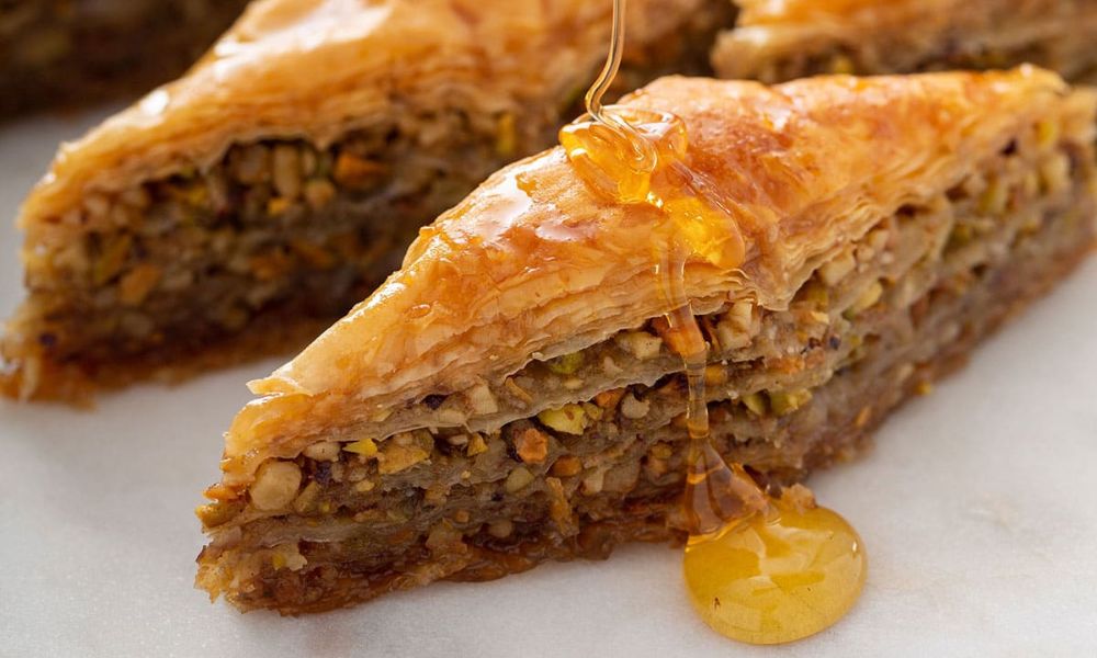 Baklava, món tráng miệng ngọt ngào, là một trong các món ăn nổi tiếng Hy Lạp được yêu thích nhất, mang đến hương vị quyến rũ từ xứ sở thần thoại. Món bánh này không chỉ là một món ăn, mà còn là một phần của lịch sử và văn hóa Hy Lạp, với những lớp vỏ bánh phyllo mỏng tang giòn rụm, hòa quyện cùng nhân hạt dẻ hoặc quả óc chó thơm bùi và lớp mật ong ngọt ngào.
