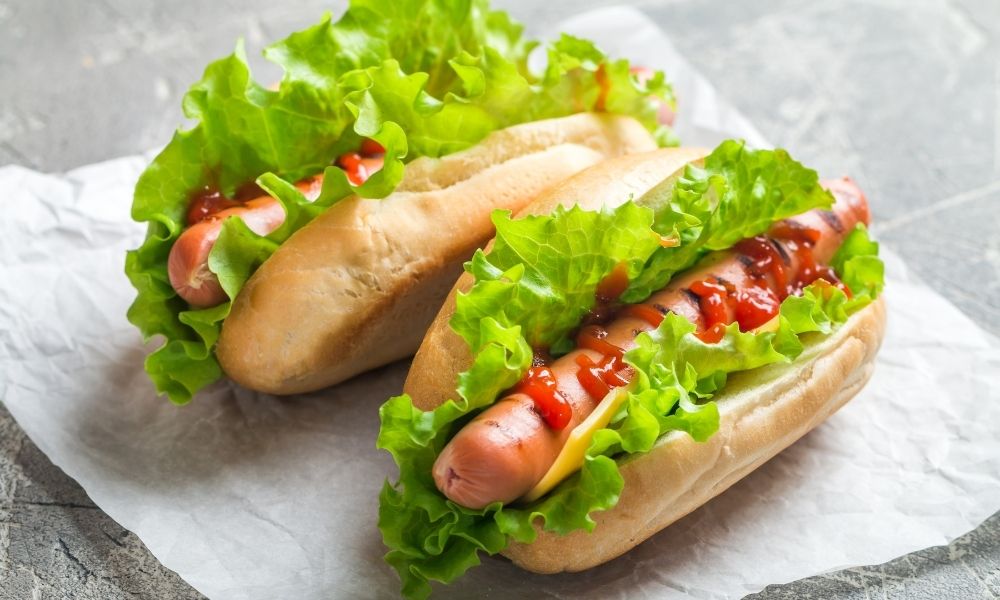 Cách làm: Kẹp xúc xích đã chiên/nướng vào bánh mì cùng rau sống, dưa chuột, cà chua, hành tây. Thêm sốt mayonnaise và tương ớt tùy thích. Đây là bữa sáng hoặc bữa ăn nhẹ nhanh gọn mà vẫn đầy đủ hương vị.