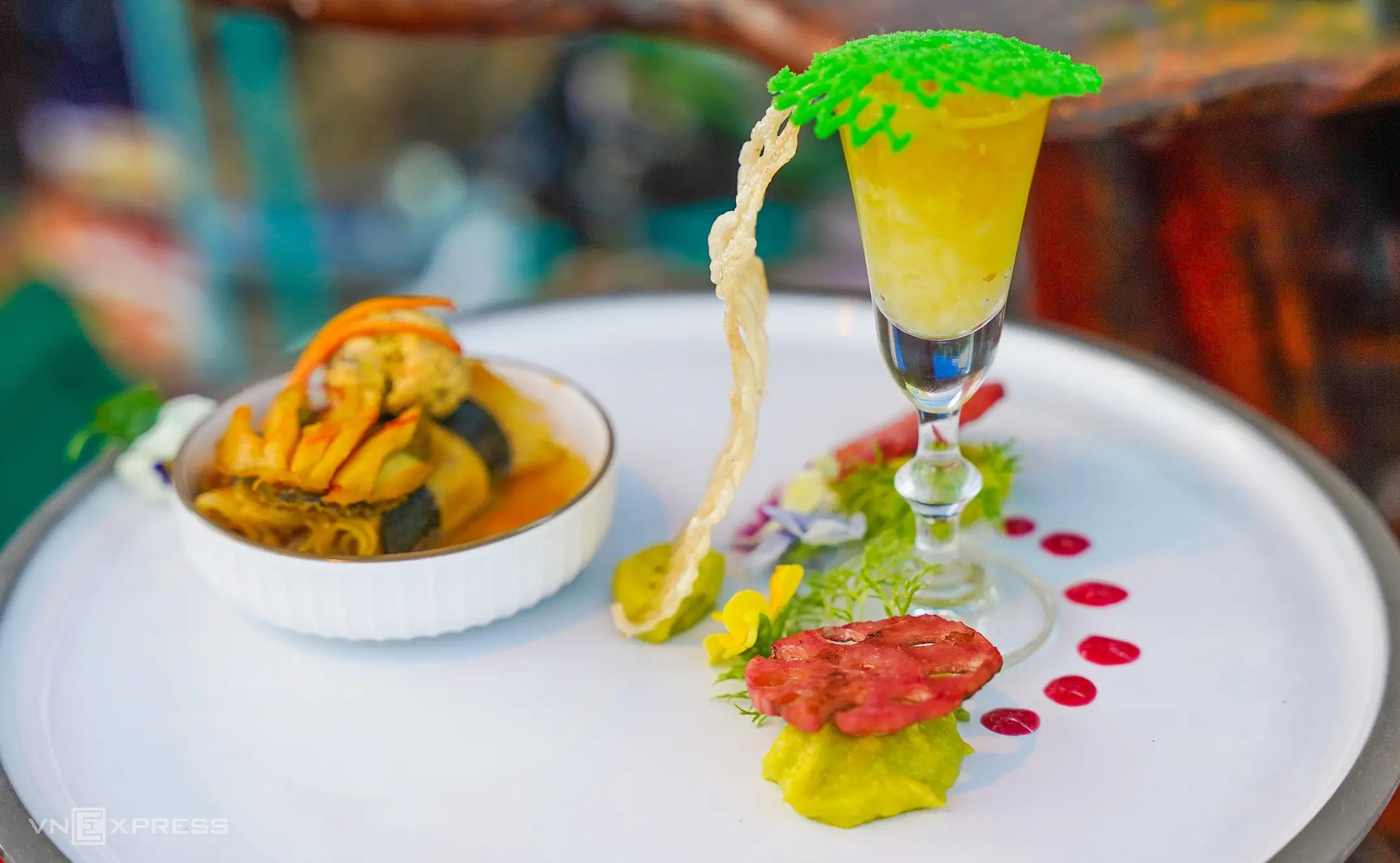 Súp yến kết hợp hải sản tươi sống như tôm, cua, mực là món ăn thể hiện sự sáng tạo trong ẩm thực biển Khánh Hòa. Vị ngọt tự nhiên của hải sản hòa quyện cùng độ mềm mượt của yến sào, tạo nên trải nghiệm ẩm thực độc đáo, vừa bổ dưỡng vừa đậm đà hương vị biển.