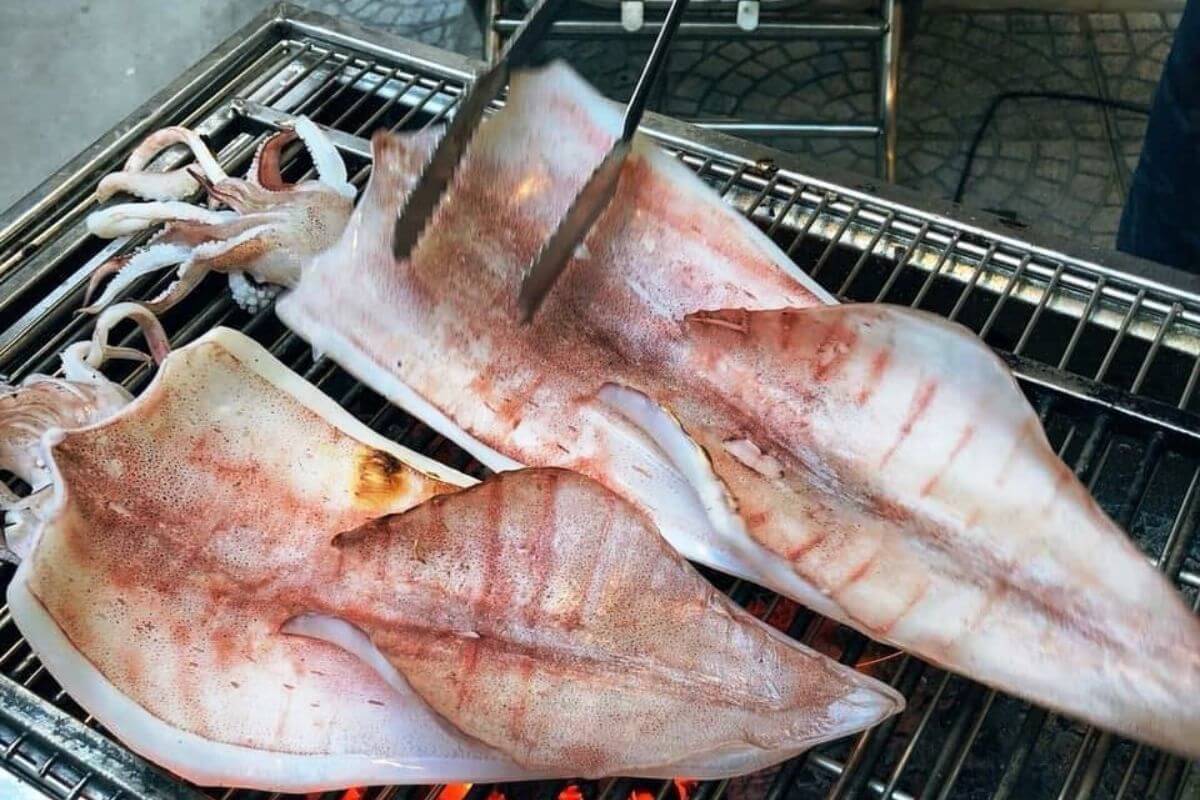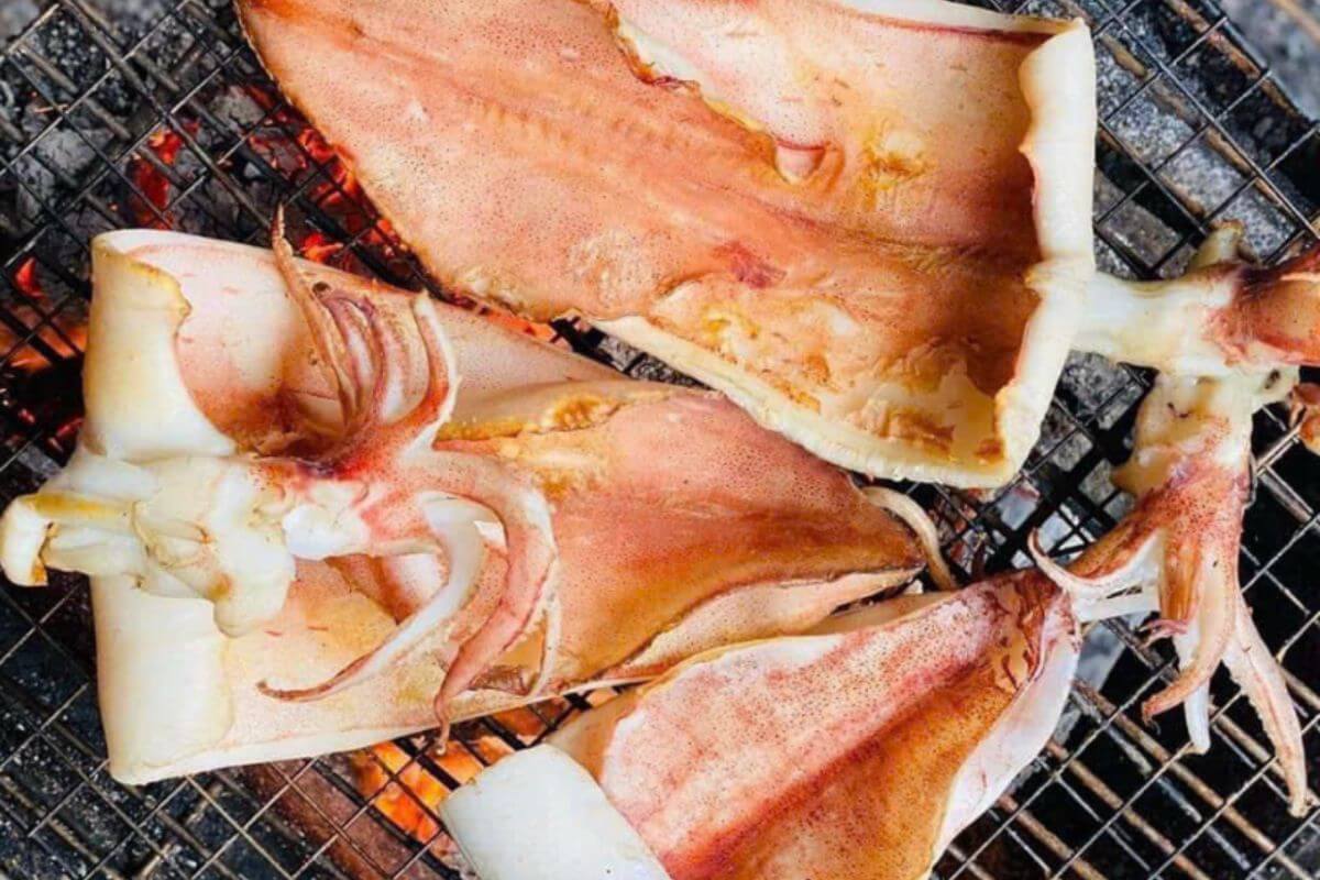 • Mực một nắng nướng than hoa: Mực được ướp muối ớt, nướng trên than hồng, giữ nguyên vị ngọt tự nhiên, thơm lừng và giòn ngon.