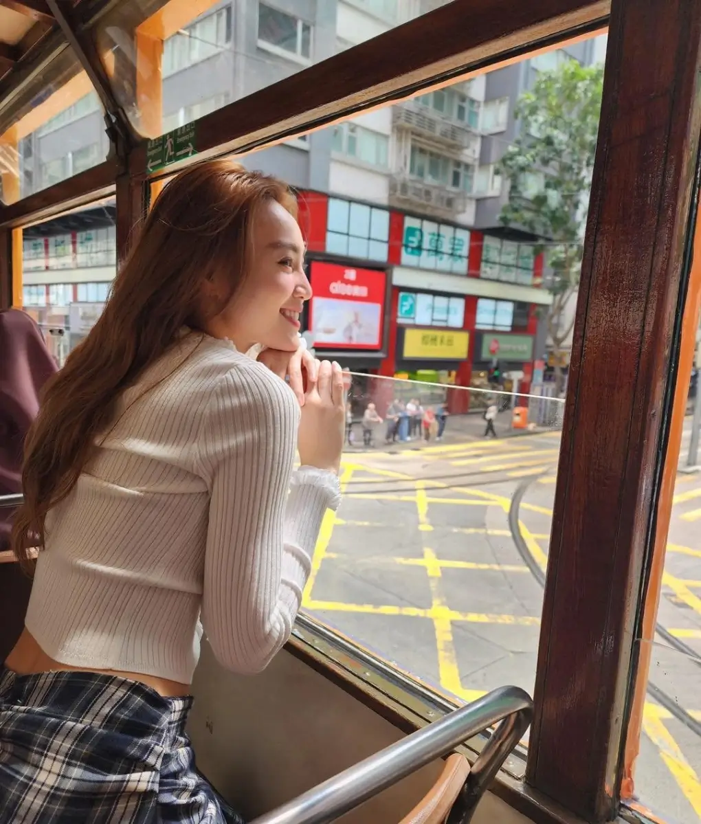 Không chỉ đi bộ hay MRT, Lan Ngọc còn trải nghiệm tram cổ “Ding Ding” – biểu tượng sống động của Hong Kong. Vé chỉ 3 HKD (khoảng 10.000 đồng), vừa rẻ vừa lãng mạn. Tàu chạy rầm rì qua phố xá, cảnh vật lướt qua như phim Hong Kong thập niên 90. Ai mà không mê?