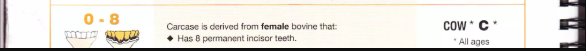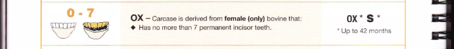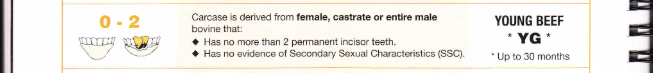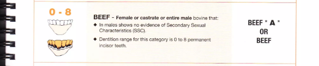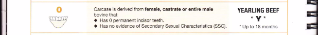 0 | Yearling Beef | Bò cái/thiến/nguyên, không răng vĩnh viễn, không SSC | Y | < 18 tháng |
