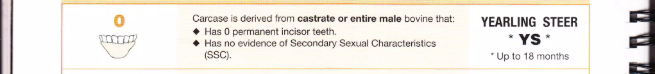 0 | Yearling Steer | Bò đực thiến/nguyên, không răng vĩnh viễn, không SSC | YS | < 18 tháng |