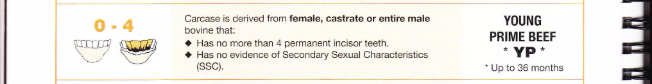 0–4 | Young Prime Steer | Đực thiến/nguyên, không quá 4 răng | YPS | < 36 tháng |