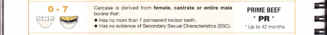 0–7 | Prime Beef | Cái/thiến/nguyên, không quá 7 răng | PR | < 42 tháng |