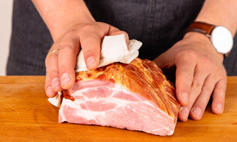 Thịt: Chọn phần giăm bông từ nạc mông heo – với kết cấu mềm mại và độ thơm tự nhiên.