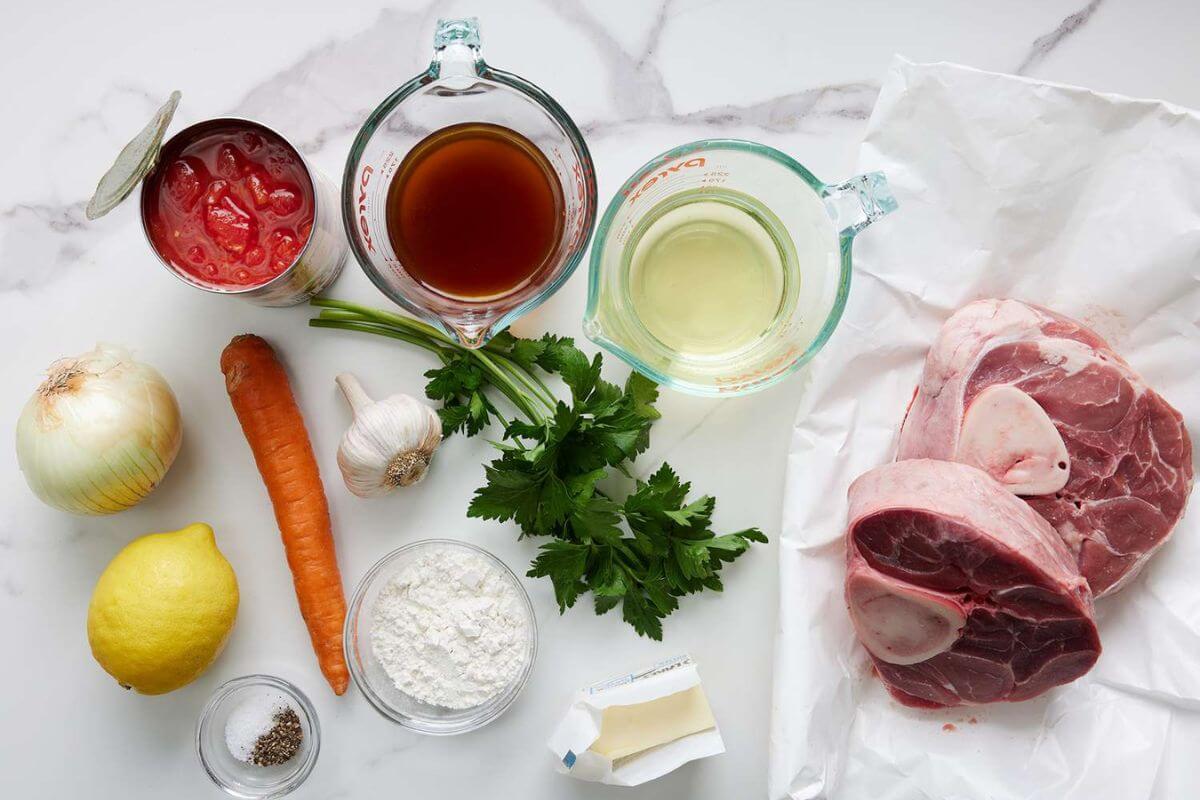 Truyền thống dùng thịt bê (veal shank) cho vị nhẹ, mềm, ít béo. Thịt bò (beef shank) cho vị đậm, béo, giá hợp lý và phổ biến hơn ở Việt Nam.
