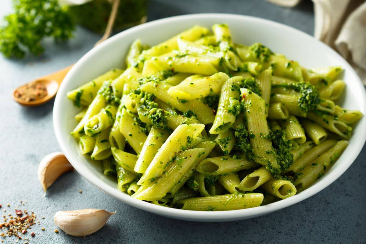 • Pesto chay: Dùng cải bó xôi, bơ, hạt điều thay cho phô mai và hạt thông, phù hợp thực đơn thuần chay.