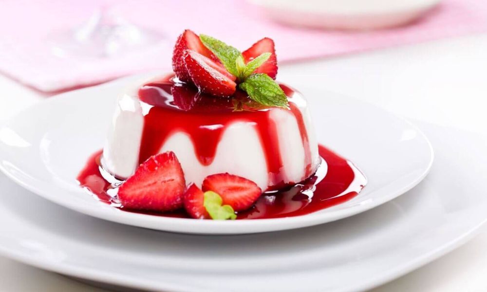 Mềm mịn như nhung, nhẹ nhàng như gió – đó là cảm giác khi thưởng thức panna cotta. Món tráng miệng Ý này làm từ kem tươi, sữa và gelatin, ăn kèm sốt dâu tây tươi chua ngọt cân bằng vị béo. Một món ăn vừa sang trọng, vừa dễ làm tại nhà cho buổi tiệc mùa hè thêm tinh tế.