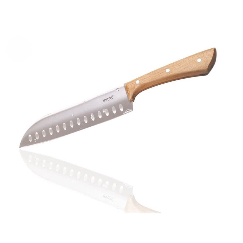 Ưu điểm: Santoku là dao đa năng phổ biến tại Nhật, với lưỡi dao ngắn hơn Gyuto (160-310mm), thiết kế phù hợp thái, băm, cắt lát. Dao có kiểu dáng nhỏ gọn, dễ cầm, phù hợp với các món ăn gia đình và chế biến nhanh.