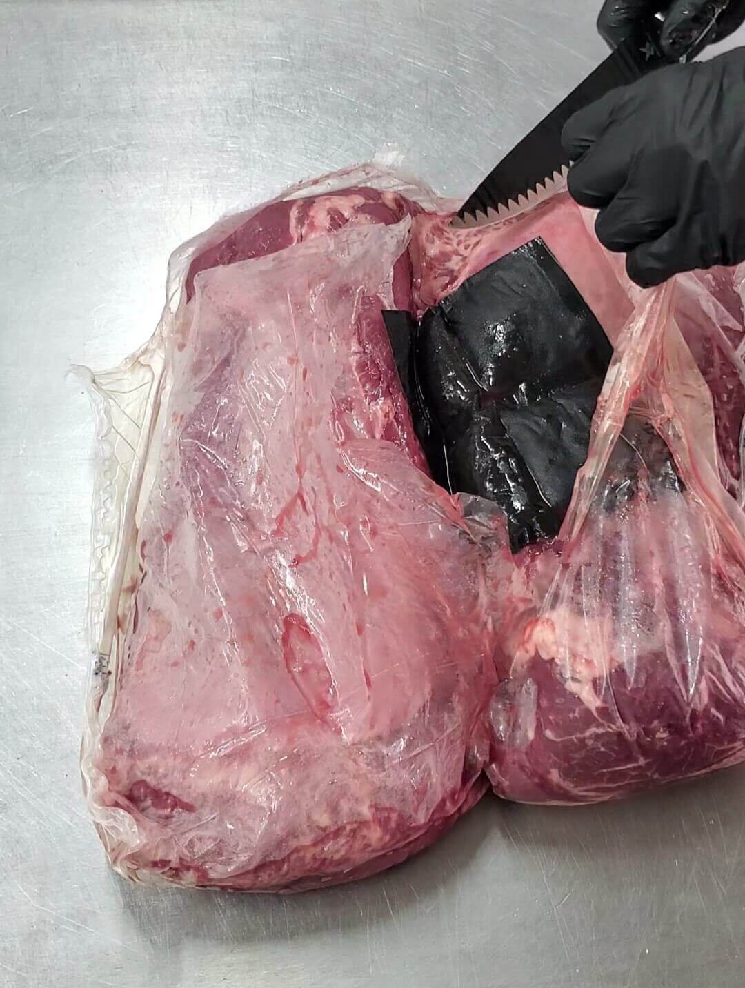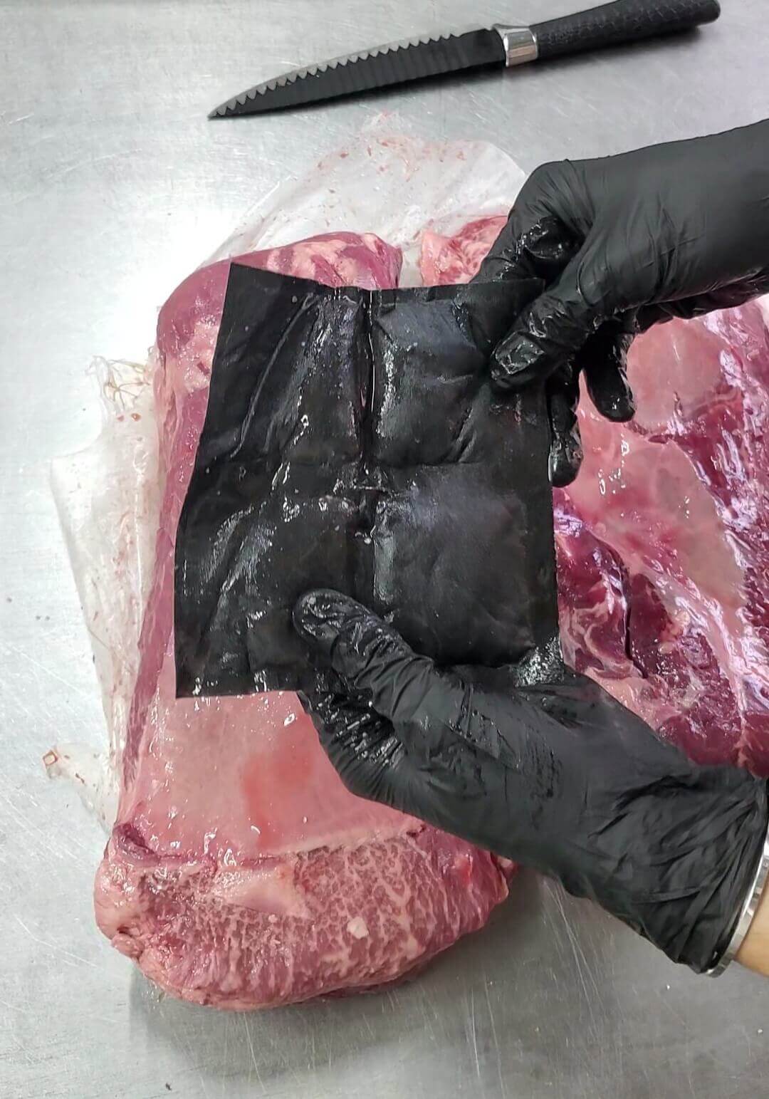 Sau khi cắt xong, tôi xếp từng lát vào khay hút chân không, chia thành từng phần 3 đến 4 lát mỗi khay, vừa đẹp cho 1–2 người ăn. Gửi lại cho khách giao hàng trong ngày trong nội thành Hồ Chí Minh.