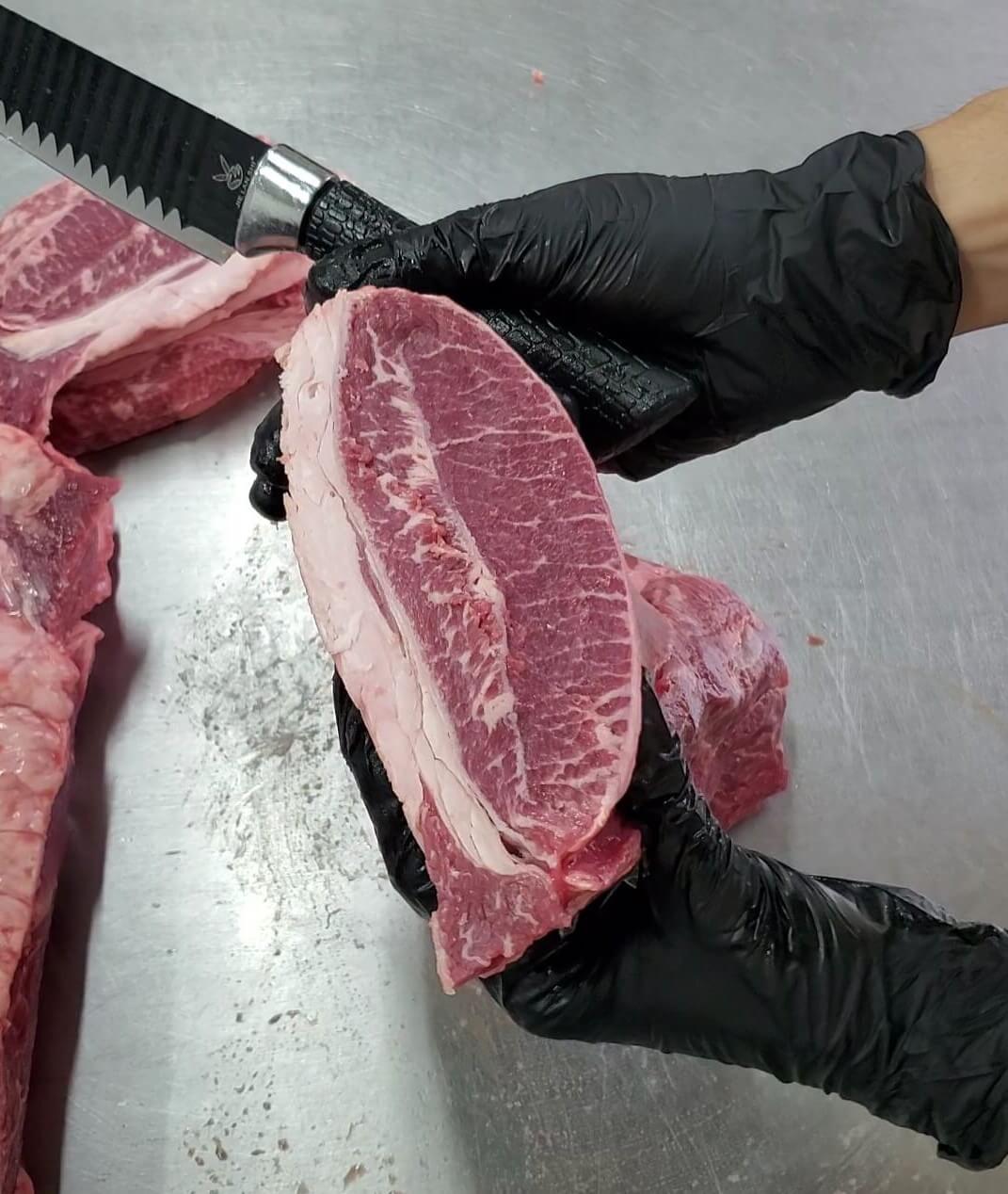 Khách yêu cầu lát làm steak và độ dày này cho phép giữ được độ chín vừa phải bên ngoài đỏ mềm bên trong. Tôi cắt với độ dày dao động từ 1.5cm đến 2cm.