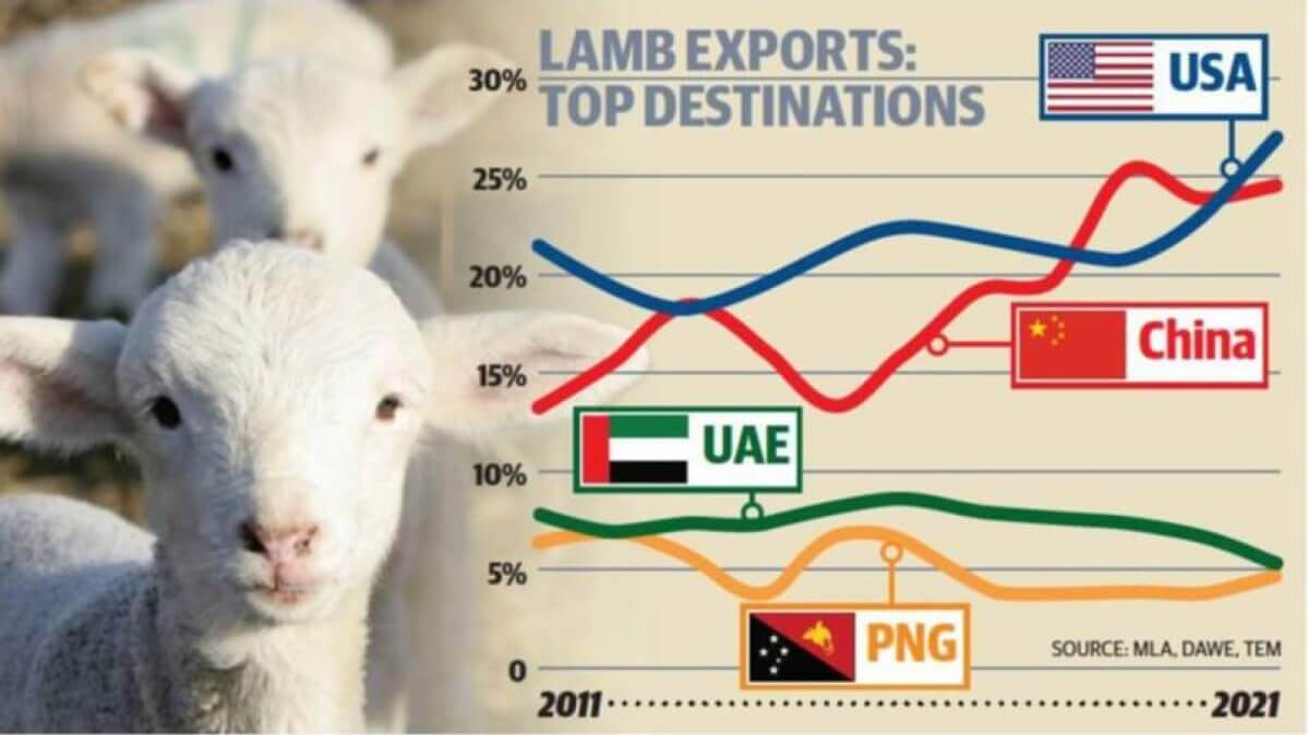 • Úc – Đế chế thịt cừu xuất khẩu: Úc là quốc gia xuất khẩu thịt cừu lớn nhất thế giới, với sản lượng năm 2023 đạt 540.000 tấn, xuất khẩu đến hơn 100 quốc gia, trong đó Mỹ, Trung Quốc, EU là thị trường lớn nhất.