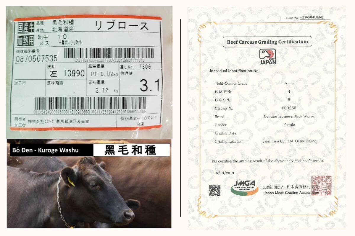 Loại thịt | Genuine Japanese Black Wagyu – Bò Wagyu Nhật thuần chủng, giống Kuroge Washu (lông đen) |