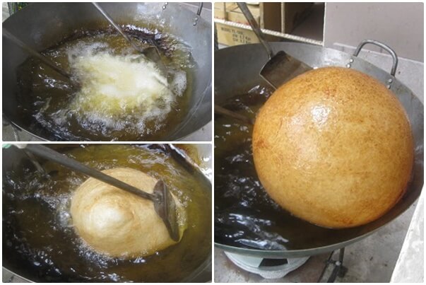 Xôi phải được chiên ngập dầu, canh nhiệt độ và thời gian chính xác tuyệt đối. Chỉ cần sai một chút – bánh xôi sẽ không phồng, bị nứt hoặc cháy. Người chiên phải xoay trở liên tục, đều tay, và cực kỳ nhẫn nại để tạo nên một “quả cầu” vàng ươm, không cứng mà vẫn giữ độ dẻo, khi cắt ra có độ mỏng chuẩn và hương thơm quyến rũ.